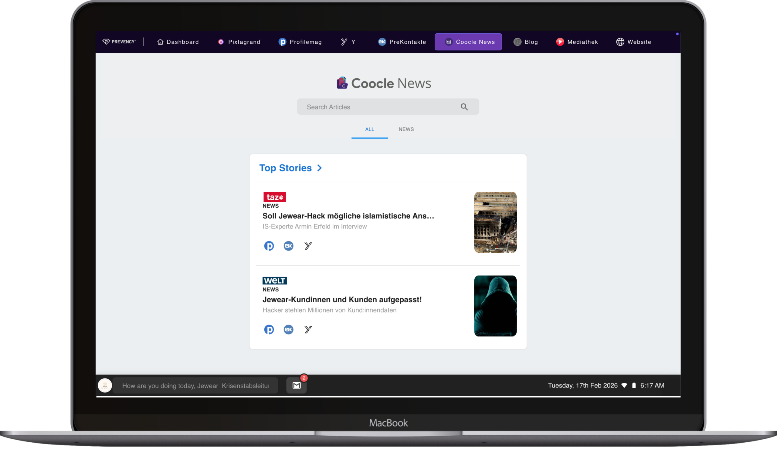 - interaktive Simulation von diversen Kanälen wie Social Media, News, YouTube & eigener Website